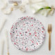 Baseball Confetti, Transparent-PAPER PARTY PLATES-Tiny little baseballs created in assorted red, white and blue patterns cover the surface of the number card holder. Punched out confetti dot patterns mix in with the baseballs. The word Boston is written on some of the balls, others have no text. The background is transparent. This design is also available with a red, blue; grey and pinstripes background. No specific holiday or event is written on the design. It can be used for any baseball themed event. Coordinating mix and match baseball supplies is available. Choose any size/style of Zazzle plates available.