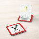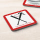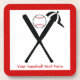 Baseball crossed bats and cap black, red custombeverage coaster that features a minimalist pictogram icon of black crossed baseball bats, a ball, a cap and your red text on white background with red border. This cool design is a template and it is completely customisable.