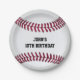 Baseball sports themed paper plates, with graphics of the red stitching of a baseball, on the white plate. Personalise the black text for your special baseball themed event, matching paper napkins and invitations are available.