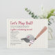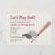 A sporty invitation that will delight every baseball fan. The off-white, striped background hosts a bat, ball and cap with the birthday year on it.