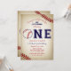 Baseball First Birthday Party Invitations! Celebrate your little rookie with this fun and unique birthday design, created with vintage style baseball background with "ONE" that has a baseball in place of the "O". Add a special touch to your child's special day with these art birthday party invitations!