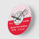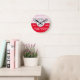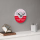 Baseball funny face birth stats Round Clock. Red White and Black | Nursery Round Clock