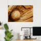 A photograph of a baseball sitting inside a baseball glove. Makes a perfect poster for a little boy's room or any baseball fan!