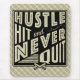 Text reads: Hustle, Hit And Never Quit, with crossed baseball and softball bats icon.