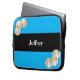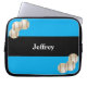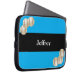 This laptop computer sleeve is decorated with baseballs on a bright blue and black striped background, and personalised with name or other text. It's easy to modify or delete example text. What a wonderful way to protect your laptop. Wonderful gift for baseball players, fans, or coaches. All Rights Reserved © 2014 Alan & Marcia Socolik.