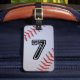 Personalised luggage tag with leather baseball with Jersey number 7.