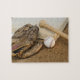 Baseball, Mitt, and Bat on Base Jigsaw Puzzle