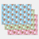 Some fun wrapping paper sheets (one light blue , one light green and one pink) with the pattern of a baseball , a mitt and a bat . Ideal for kids birthday or baby showers .