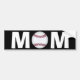Fun bumper sticker in black with bold white letters M and M, with graphics of a white and red baseball, in between the letters. Great car sticker for the soccer mum.