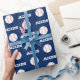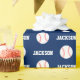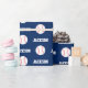 Custom baseball personalised name navy blue wrapping roll for your sports fan! This unique gift wrap features a baseball pattern design. You can change the background colour and font style. Perfect for birthday or baby shower gift wrapping.