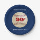 A baseball on a dark blue background decorates this unique and fun party paper plate. Although default says "90th Birthday Party", you can easily change the name, # of years, and event. A sure Home Run!. Matching napkins available at my zazzle store, SocolikCardShop*. Baseball fans will love it! All Rights Reserved © 2015 Alan & Marcia Socolik.