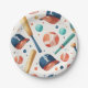 Baseball Pattern Blue Red Bat Hat Ball Birthday Paper Plate