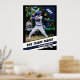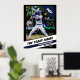 Introducing our captivating Baseball Poster, meticulously crafted to capture the essence of the beloved American sport. Encased in a sleek black frame, this poster features a striking blue field in the top right corner, boldly showcasing the player's uniform number in crisp white font against a backdrop of dynamic blue and black diagonal stripes.
