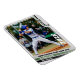 In the top right corner, the customisable uniform number stands out in a striking black san-serif font, adding a personalised touch to your magnet. Positioned proudly at the boot right, the customisable year complements the design, presented in a bold san-serif font against a backdrop of light grey, ready to commemorate special moments. Completing the ensemble, three distinct stripes of grey, green, and black adorn the bottom, providing a visually appealing backdrop. From the customisable team name in dynamic black san-serif font to the player's name in vibrant white against a green stripe, every detail speaks to the passion for baseball. Embrace the spirit of the game with our customisable photo magnet, a cherished keepsake for fans and players to celebrate their love for baseball.
