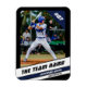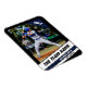 Introducing our baseball player magnet, meticulously crafted with a sleek black frame adorned with striking blue and white elements. At the top right corner, the uniform number stands boldly in white, customisable to your preference, set against a vibrant blue stripe. Below, three crisp stripes of white, blue, and white accentuate the design, while the top stripe proudly displays the team name in dynamic black font. In the centre, your player's image takes pride of place, fully customisable to capture your favourite baseball moments or honour your sports heroes. Completing the ensemble, the player's name and position are elegantly presented in white atop the blue stripe and in black against the white field, respectively.
