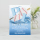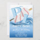 Dive into the fun with this creative and eye-catching baseball pool party birthday invitation! Featuring a playful design with a baseball, bat, and bold "PL" letters splashing in water, this invite perfectly combines two favourite summer activities — baseball and swimming.