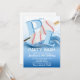 The fresh blue and white colour palette gives it a cool, summery feel that kids will love. All text is fully customisable — personalise the birthday boy's name, age, date, time, and location with ease. Don't forget to remind guests to bring a swimsuit and towel!