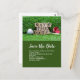 Baseball save the date with ball on green postcard