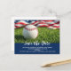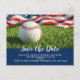 Announce your special day with a playful and patriotic twist! This Baseball Save the Date card features a classic baseball resting on lush green grass with the American flag waving proudly in the background. Perfect for sports fans, baseball enthusiasts, or couples celebrating their engagement or wedding with a fun, sporty, and patriotic theme. Bright modern watercolor style adds charm and vibrant colour to make your announcement memorable.