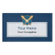 Baseball icon with two bats and a ball over a blue shield. Custom background colour. Custom text fields for name and occupation.