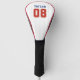 Red, white and blue baseball / softball golf head cover with pinstripes. Personalise it with your own text. Great for sports fans or players.