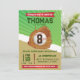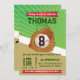 A fun and colourful baseball themed birthday invitation. Featuring a large baseball glove and ball on the front and baseball players on the back.