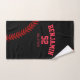 Hit a home run with this personalised baseball towel, designed by The Arty Apples. Featuring a classic white background with red stitching, this sporty design can be fully customised with the player’s name, team name, and jersey number — making it an ideal gift for players, coaches, or baseball fans.