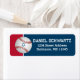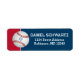 These navy blue, red, and white Bar Mitzvah address labels have a large red and white baseball on the left side with a small blue Star of David centred on it but they can also be used for mailing out any baseball party or event invitations if you remove the Star of David. There is a sports-style accent font used for the name of the Bar Mitzvah in white with the address printed below in white.