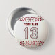 Baseball Stitches Player Number 13 and Custom Name 7.5 Cm Round Badge