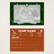 Do-it-yourself baseball team card. Insert a photo of your baseball team and then customise the text fields to add your own team name and statistics on the back of the card and also the team roster. The front of the card is shaded with a background colour of diamond grass green which is complimented by the card's back colour of infield dirt brown.