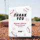 Simple baseball thank you coach card with thank you text, coach name, team name, year, your name and baseball balls. The card is in white, red and black color scheme. On the back side is a baseball ball. Personalize the card with names and your text. Great thank you card for the baseball team coach!