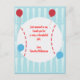 This fun baseball post card is perfect to send a thank you to your guests for coming. The postcard has a baseball bat pattern in the background and balloons in the foreground.