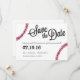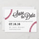 Save the Date design with baseball stitching for your baseball themed wedding! Customise with your favourite team colours.
