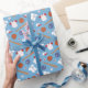 Giving a baseball related gift to a birthday boy? Give him a big hint of the present with this cute baseball wrapping paper! It has many colourful baseball elements which include cute baseball tees like the striped tee with different colour sleeves and collar, a vest like tee with the alphabet B, baseball, bat, helmet, cap, mitt and decorations with stars.
