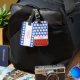 Red, blue and white are the bright colours for this patterned luggage tag with a baseball theme. Baseballs and baseball bats are on the front, and more baseballs decorate the back. You can personalise with a name or other text on the front, and on the back add your preferred message and contact details.
