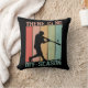 Baseball fans and players alike will love this colourful baseball theme throw pillow with a black silhouette baseball player and text that reads There Is No Off-Season!