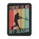 Baseball fans and players alike will love this colourful baseball theme flexible magnet with a black silhouette baseball player and text that reads There Is No Off-Season!