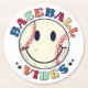 Baseball Vibes Happy Face Ball Round Paper Coaster