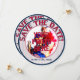 Baseball Wedding Themed-Round Save the date cards-Template 3. The front side of the card is a photo insert/frame. Blue outer and and red inner rings with a personalised photo in the centre. Remove my photo insert and replace with a photo of your own. Decorative red and blue glass text circles around the top and reads: SAVE THE DATE. More text sits at the bottom and reads: THE COUPLES WEDDING DATE. Edit the text for dates, the couples names, etc. Delete/clear the text if it's not wanted. The outer rim background is red, white and blue baseball stripes. On the back side of the card you have the same text at top. The bottom text reads: A HOME PLATE WEDDING. Two wooden bats, red and blue sit off to the left. The centre background is a white baseball with red stitching. Decorative text curves around the ball and reads: HIM and HER (your names) are stepping up to home plate and batting 1000 that their love will last forever. The teams will merge into one on...your date. Please join us in celebration as we vow our love for one another. The baseball wedding themed invites are available in several mix and match patterns. These invites include the envelopes as well.