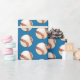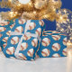 Wrapping paper shown with a sports baseball print on a blue coloured background. Customise this item or buy as is.