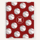 This baseball themed spiral notebook features a pattern of baseballs on a black background - customise with monogram or varsity letter - by katz_d_zynes