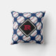 Sports theme kids All-American baseball personalised pillow- Perfect for baseball fan's bedroom decor or boys nursery pillow. Bold, red, white and blue baseballs pattern. Monogrammed initial centred on black and white diamond in red, retro athletic style lettering. On navy blue background, which may be changed to any colour, whether to match kids bedroom decor or a favourite colour. Back is identical. Fun gift for baseball players, athletes and baseball fans. Cute, custom boys baby shower gift. We have matching baseball theme blanket and coordinating sports theme pillows, as well as other kids decor pillows in our Zazzle.com/angela65* shop.