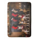 An enchanting scene captures the essence of cosiness and holiday spirit as furry companions adorned in Santa Claus hats gather around a crackling fireplace. The warmth emanating from the hearth creates a snug atmosphere for these adorable canines, while festive stockings hang in the background, enhancing the merry ambiance. The charming illustration portrays a timeless image of companionship and festive joy, perfect for celebrating the holiday season with a touch of canine charm.