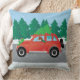 Basenji Dog Driving a Red Car with Christmas Tree Cushion