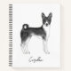 Destei's original black and white colour illustration of an adorable Basenji breed dog drawn in digital ink wash style. There is also a personalizable text area for a name or other custom text.