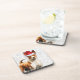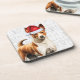 Fun coaster set for the person who loves their Basenji. This one wears a Christmas Santa hat for a stylish approach to the holiday season, and sits cutely against a faded WOOF background to decorate your home or office with seasonal pet lover joy.