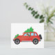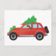 Basenji hound dog driving car with Christmas tree Holiday Postcard