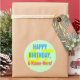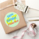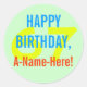 This basic and plain birthday sticker design features a message like "HAPPY BIRTHDAY, A-Name-Here!", where the name can be customised. The birthday number can also be customised. Stickers like this could perhaps be given as a gift to somebody who is celebrating a birthday. [~Z0000256]