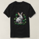Cute white bunny rabbit surrounded by 4 leafed clovers