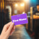 This simple badge design features a purple coloured background plus a bold white coloured name that can be customised. It could perhaps be used by somebody who likes the colours purple and white.